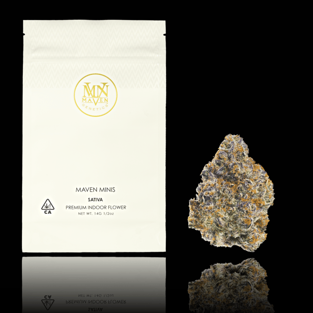 Whether you are an experienced connoisseur or a novice, Maven Minis offer the perfect balance of quantity and quality, delivering the same high caliber experience as our full-sized flower, but in a convenient and travel-friendly package. These compact 14g Mylars may contain smaller nugs - but don't be fooled by their size! Each bag is packed with the same nuanced, top-tier Maven Genetics strains you know and love.