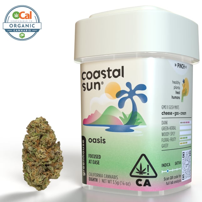 Oasis is an aromatically creamy cultivar with soft hints of cheese that open up into a lightly gassy and floral perfume scent. It’s a cross between the notoriously pungent GMO and the funky Gush Mints – flavors that amplify when smoked. The effects tend to hit heavy in the body and leave you with red eyes. It’s an addition to your smoke sesh may help to relieve tension leaving you feeling optimistic and focused.