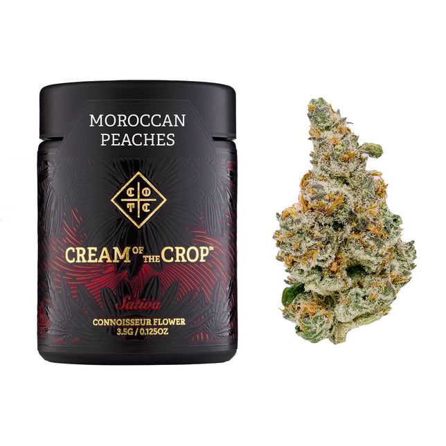 Moroccan Peach is a flavor sweeping the cannabis industry for good reason - this terpene profile gives new definition to peachy weed, and is sure to make your eyes pop open the second you get a whiff! A blend of Spanish Barbara and Lemon Tree Skorange, the Moroccan Peaches induces potent sativa effects and can be a bit of a creeper in larger doses. This is a flavor that will remain in your pipe or bong much like the Tangie with its super peachy potpourri funk.