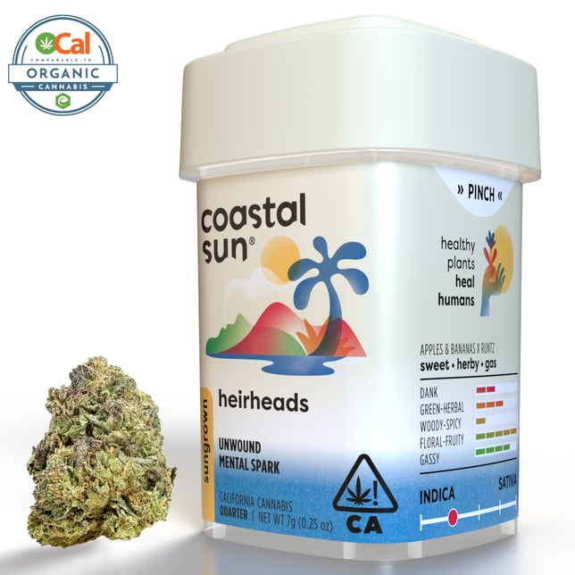Heirheads is a genetic cross of Apples & Bananas and Runts, delivering a fruity-like fragrance profile that also features notes of herbs and gas. Some users have associated its aromas with those of sweet cherry or pink candies. The experience may help drop your shoulders and ease body tension, while also potentially delivering a mental spark. This cultivar may be suitable for creative, mellow, or social settings.